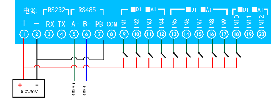 DAM1012D 工業(yè)級(jí)繼電器控制板,10路繼電器控制(DO)12路開(kāi)關(guān)量采集(DI) ,10路繼電器控制輸出,觸點(diǎn)隔離;12路開(kāi)關(guān)量輸入;支持RS232或隔離RS485通訊接口;標(biāo)準(zhǔn)Modbus協(xié)議,支持Modbus RTU/ASCII;支持點(diǎn)動(dòng)輸出,聯(lián)動(dòng)功...