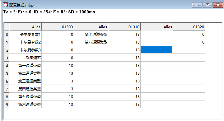 使用03指令寄存器地址從01300開始配置,可以每個(gè)通道為不同的信號(hào)類型,