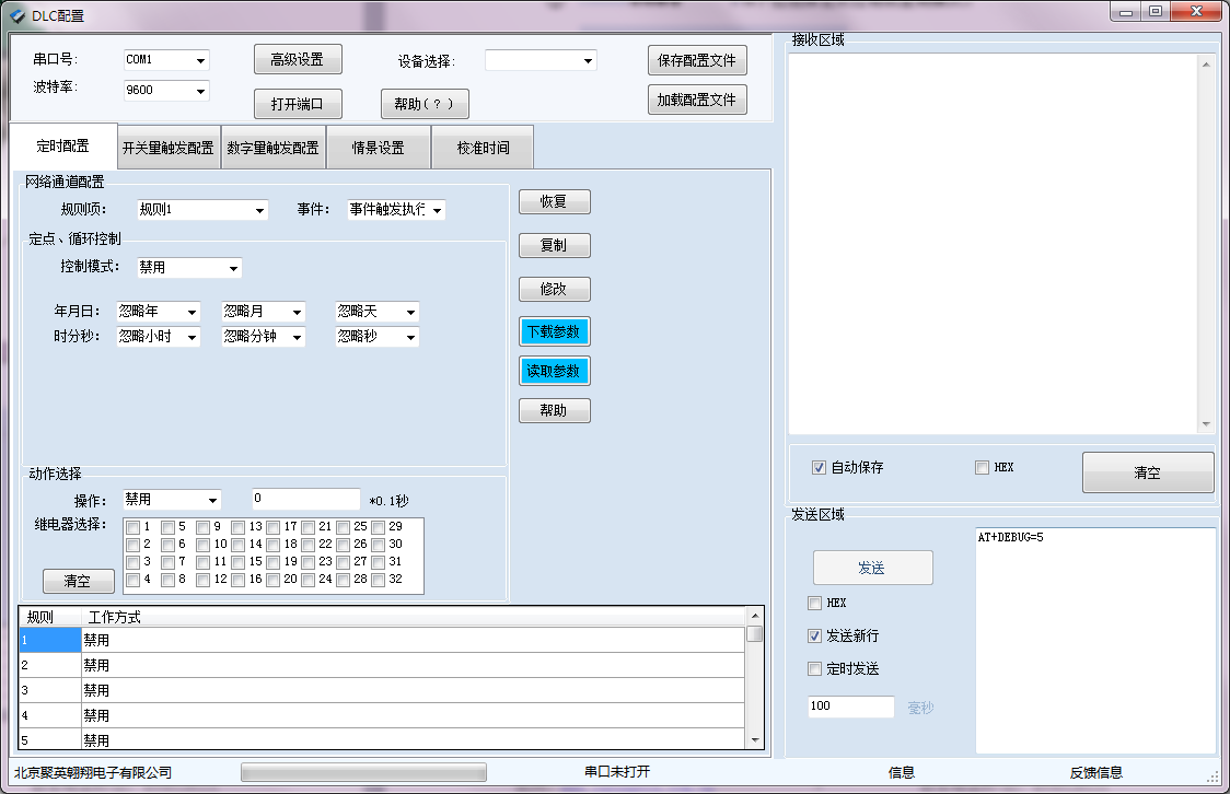 開關(guān)量(DI)輸入和模擬量(AI)輸入與繼電器輸出(DO)的對應(yīng)關(guān)系,需要使用DLC配置軟件進行配置。