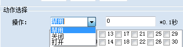 選擇操作動作,打開或者關(guān)閉,后面的參數(shù)為點動時間,如:選擇打開,設(shè)置時間后,則超過時間繼電器自動關(guān)閉,選擇關(guān)閉,則超過時間后繼電器自動打開。