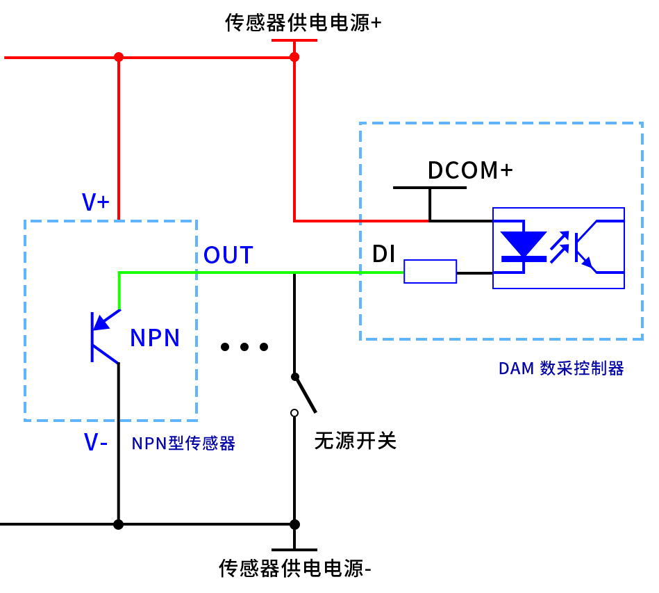 下圖中采集卡中的AD接口指AI_1-AI_12,GND指COM-。