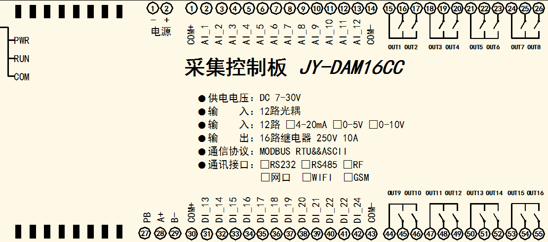 DAM16CC-RS485 | ● | ● | 16 | 12 | 12 |