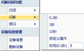 注:閃斷閃開模式不能寫入設(shè)備芯片內(nèi),軟件上選擇閃斷閃開模式后,所有通道都為閃斷閃開模式下,可通過發(fā)送單個通道的閃斷閃開指令來進行單個通道的控制,不影響其他通道的正??刂啤?/span>