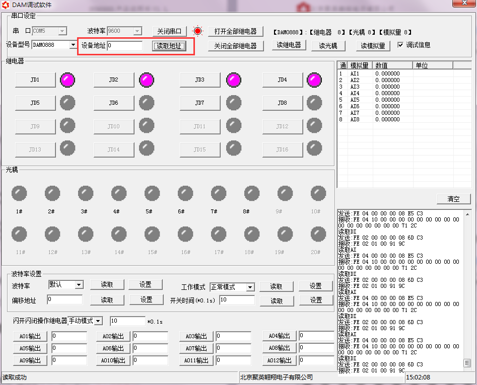 點擊DAM調試軟件下方偏移地址后邊的“讀取”或“設置”來對設備的偏移地址進行讀取或設置。