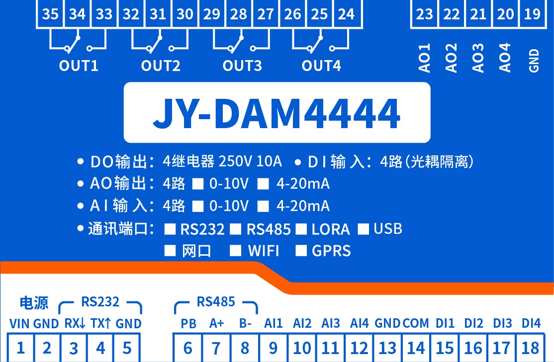 功能說(shuō)明:4DO+4AI