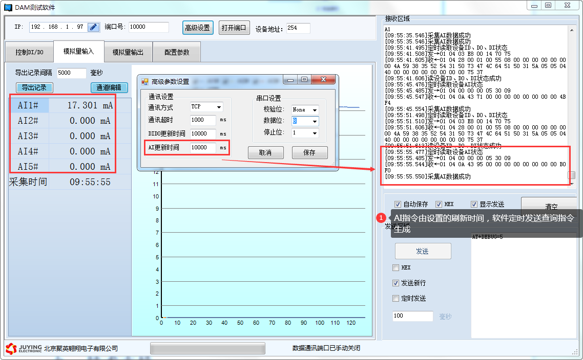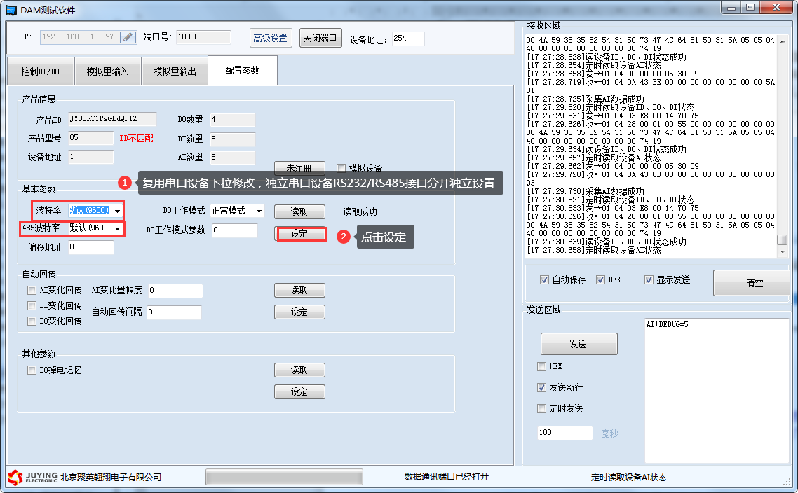 詳細使用說明參考:JYDAM調(diào)試軟件使用說明