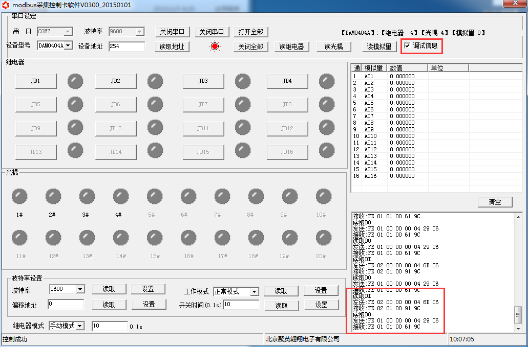點(diǎn)擊DAM調(diào)試軟件下方偏移地址后邊的“讀取”或“設(shè)置”來對設(shè)備的偏移地址進(jìn)行讀取或設(shè)置。