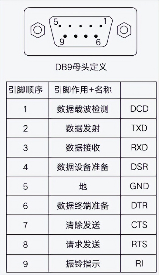 RS232接線為標(biāo)準(zhǔn)DB9母頭接口,為直連線,引腳定義如下所示: