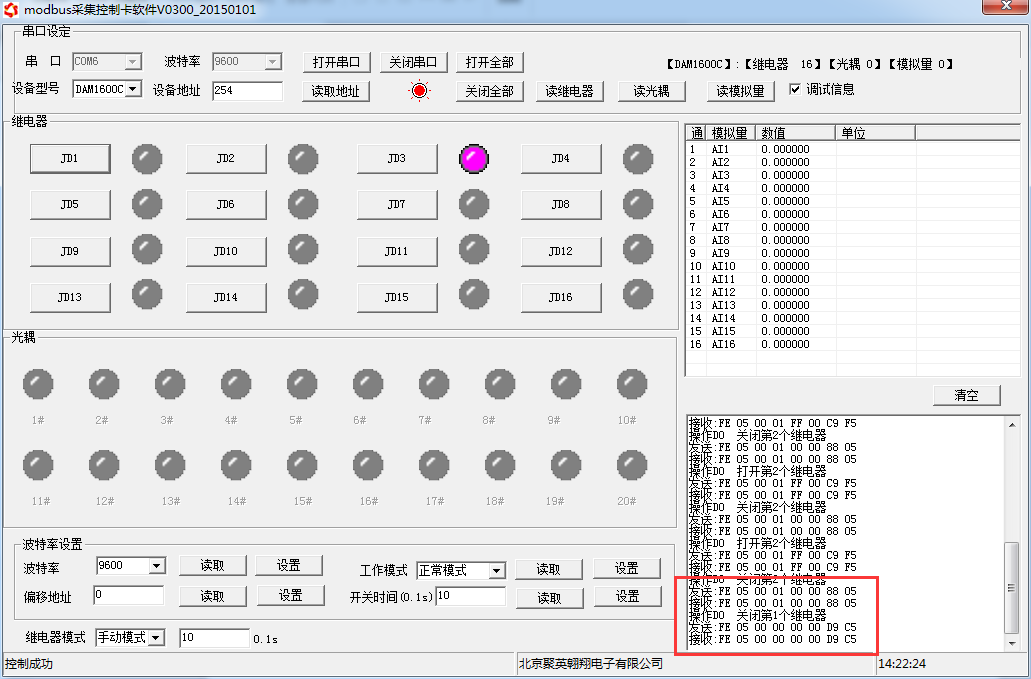 控制22路 | FE 10 00 62 00 02 04 00 02 00 0A 66 8E |