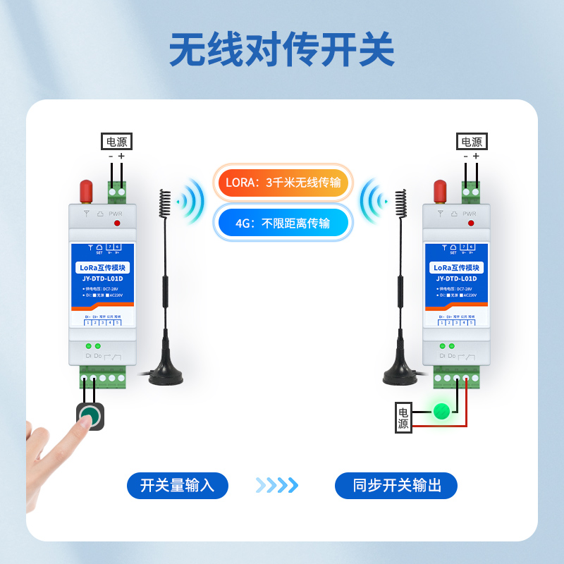 開關(guān)量對(duì)傳系列,無需設(shè)置點(diǎn)對(duì)點(diǎn)通訊 雙向?qū)崟r(shí)同步,LORA通訊/4G通訊2選1,開關(guān)量輸入支持無源和有源(NPN或PNP型)