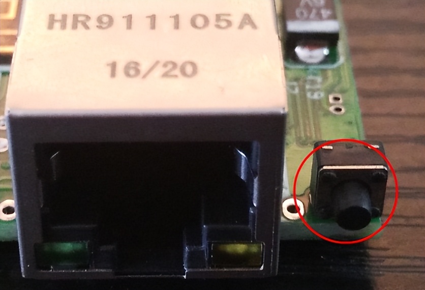 網(wǎng)口左邊有黑色的小按鍵為復(fù)位按鍵。