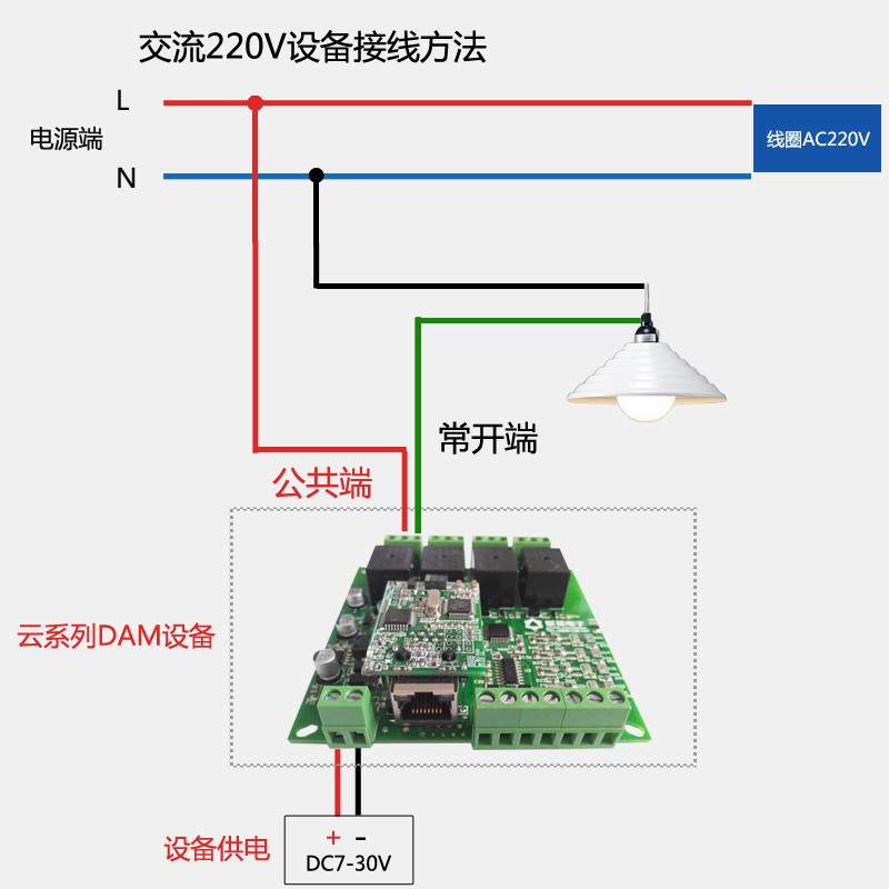 DAM0200C設備是我公司云系列設備中網(wǎng)絡版的一種,設備通過連接Internet廣域網(wǎng)來進行通訊,使用我司配套的云平臺軟件可實現(xiàn)遠程控制設備功能,每個設備具有唯一ID號方便用戶進行二次開發(fā)使用。