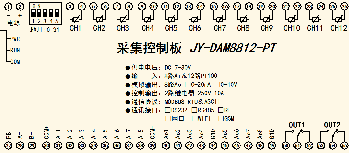 功能說明:8DO+8DI+8AI