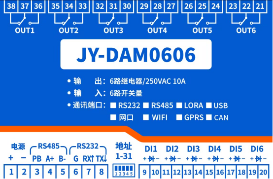 打開“聚英翱翔DAM調(diào)試軟件”;串口設(shè)定欄:串口選擇您電腦對應COM口,波特率選擇設(shè)備默認波特率(9600)(未自己設(shè)置過波特率前),設(shè)備地址填寫“254”(254為設(shè)備的廣播地址),設(shè)備型號選擇相對應型號,設(shè)置好以上設(shè)備的4個參數(shù)后點擊打開串口,點擊繼電器按鈕“JD1”若繼電器反應則連接成功。